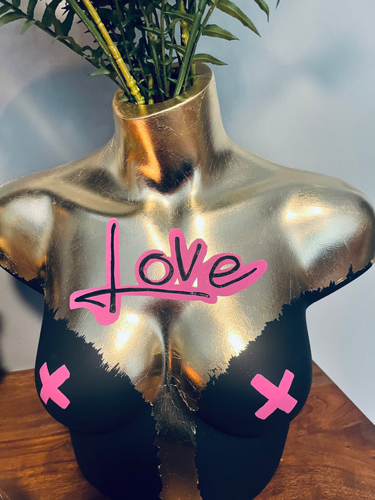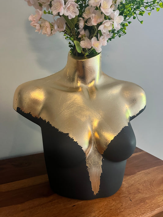 Female Boobie Wall Torso Boobie Artificial Plant Holder Black and Gold with Gold Leopard