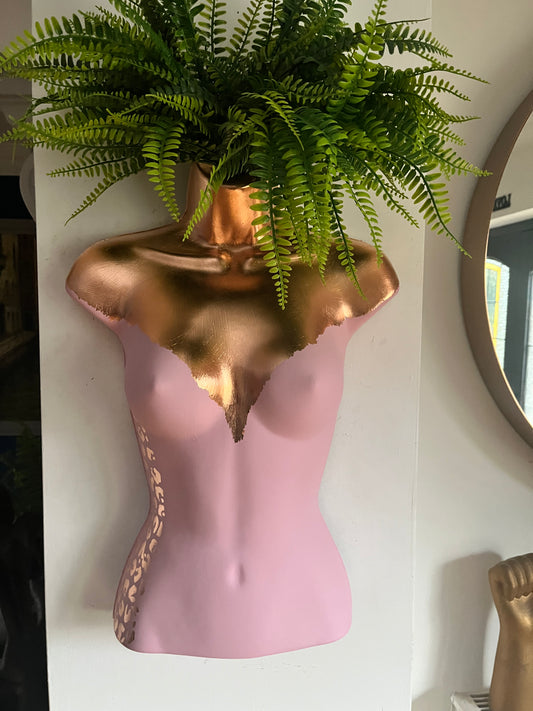 Female Boobie Wall Torso Boobie Artificial Plant Holder Pink and Rose Gold with Rose Gold Leopard