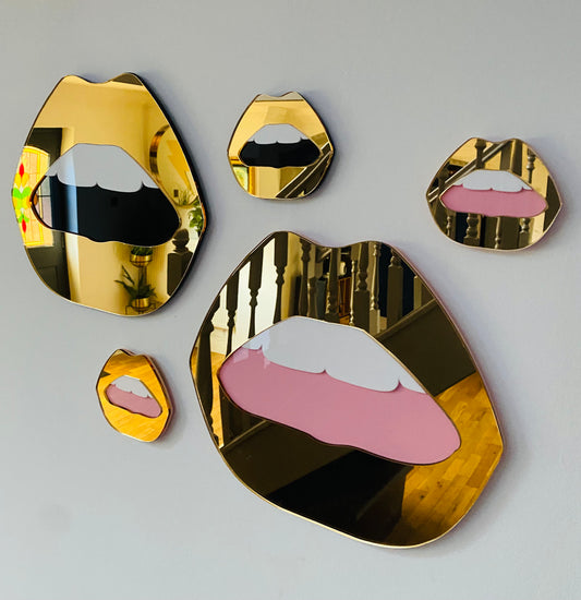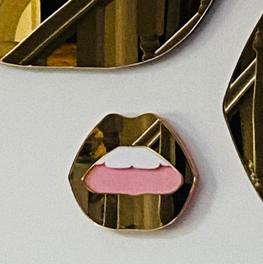 MINI Gold Lip Mirror - Acrylic Mirror - Lip Decor - Gold lips with pink
