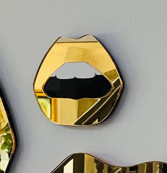 MINI Gold Lip Mirror - Acrylic Mirror - Lip Decor - Gold lips with black