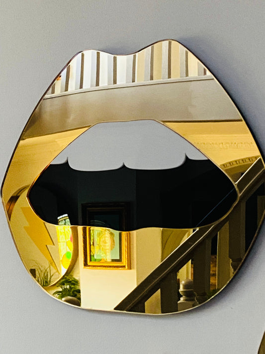 LARGE Gold Lip Mirror - Acrylic Mirror - Lip Decor - Gold lips with black