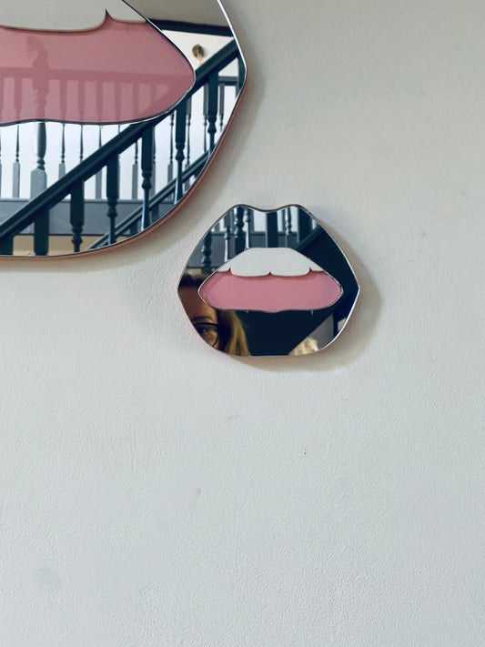 MINI Silver Lip Mirror - Acrylic Mirror - Lip Decor - Silver lips with pink