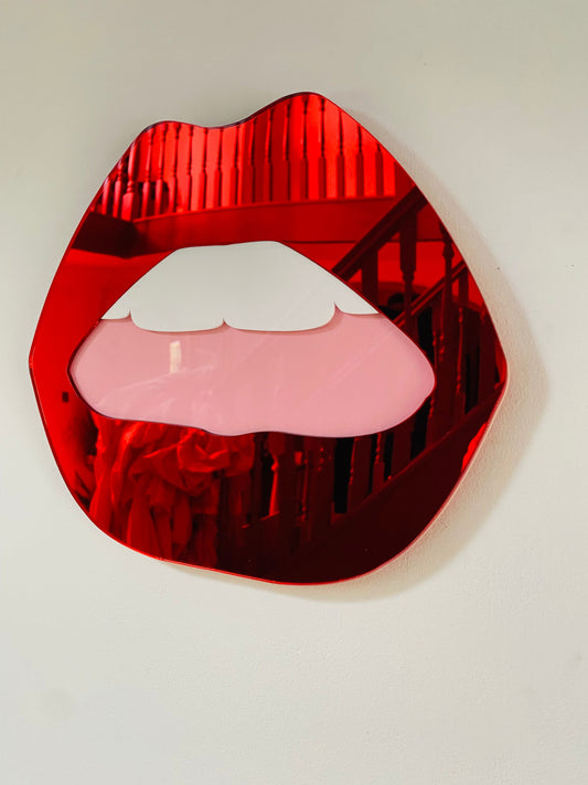 LARGE Red Lip Mirror with pink mouth - Acrylic Mirror - Lip Decor - Red Lips