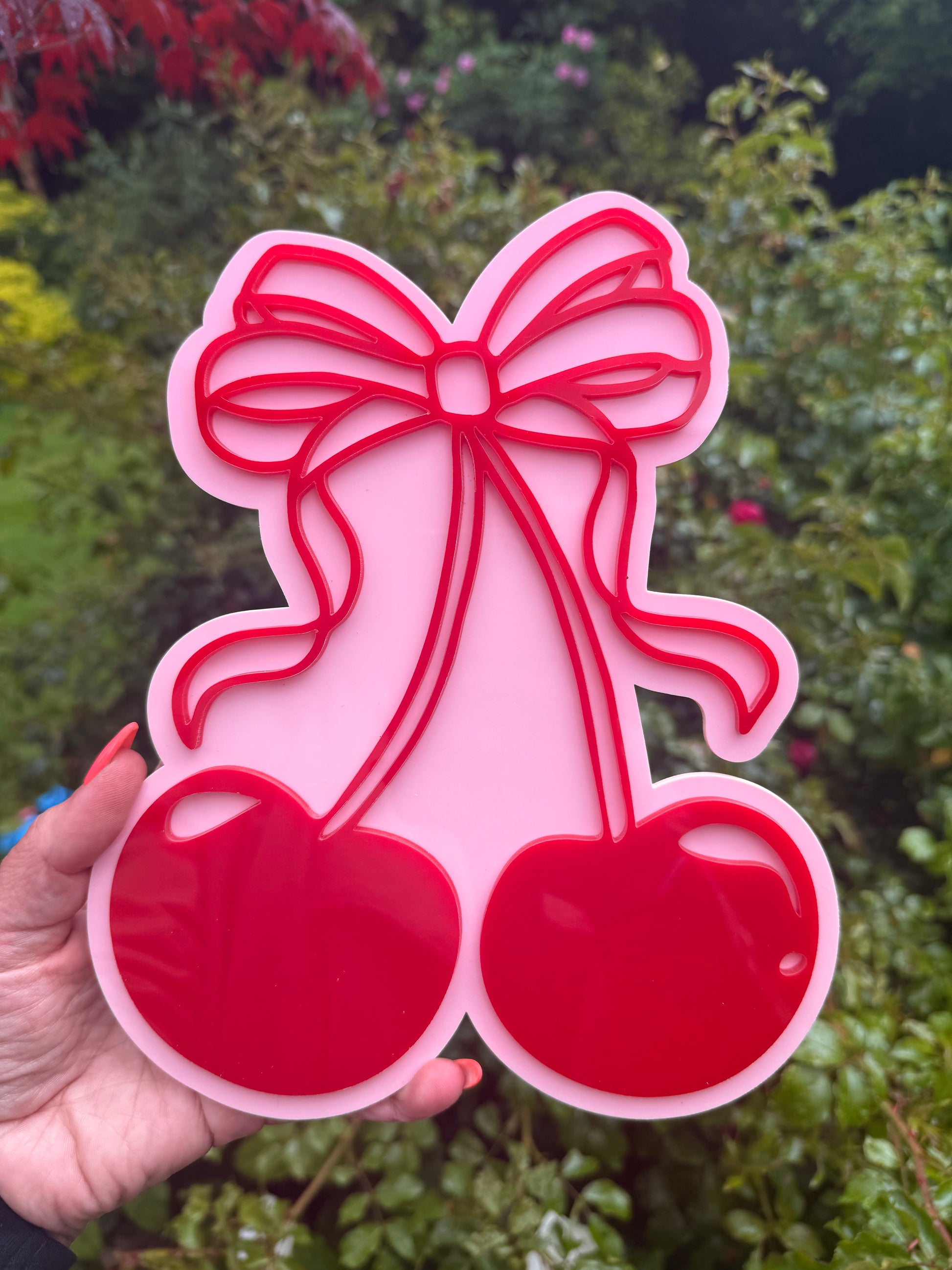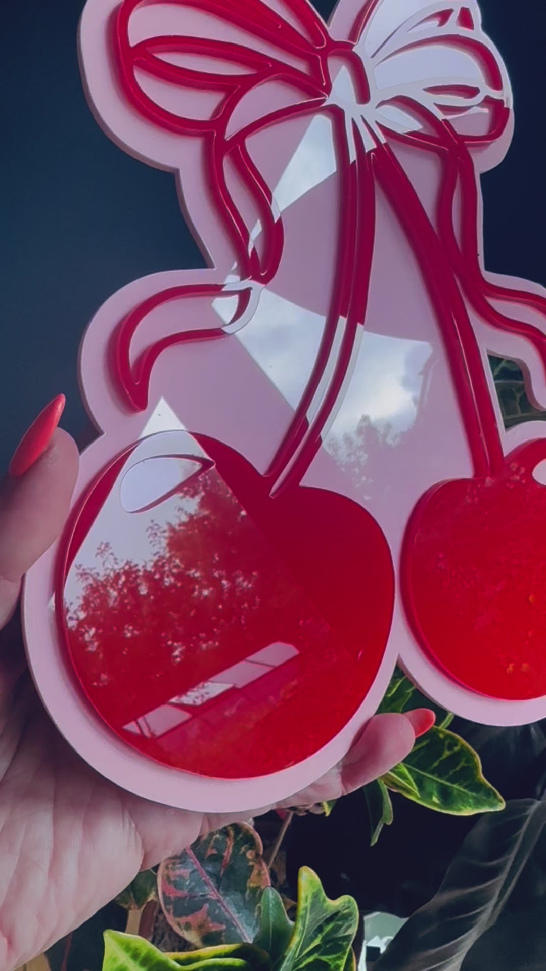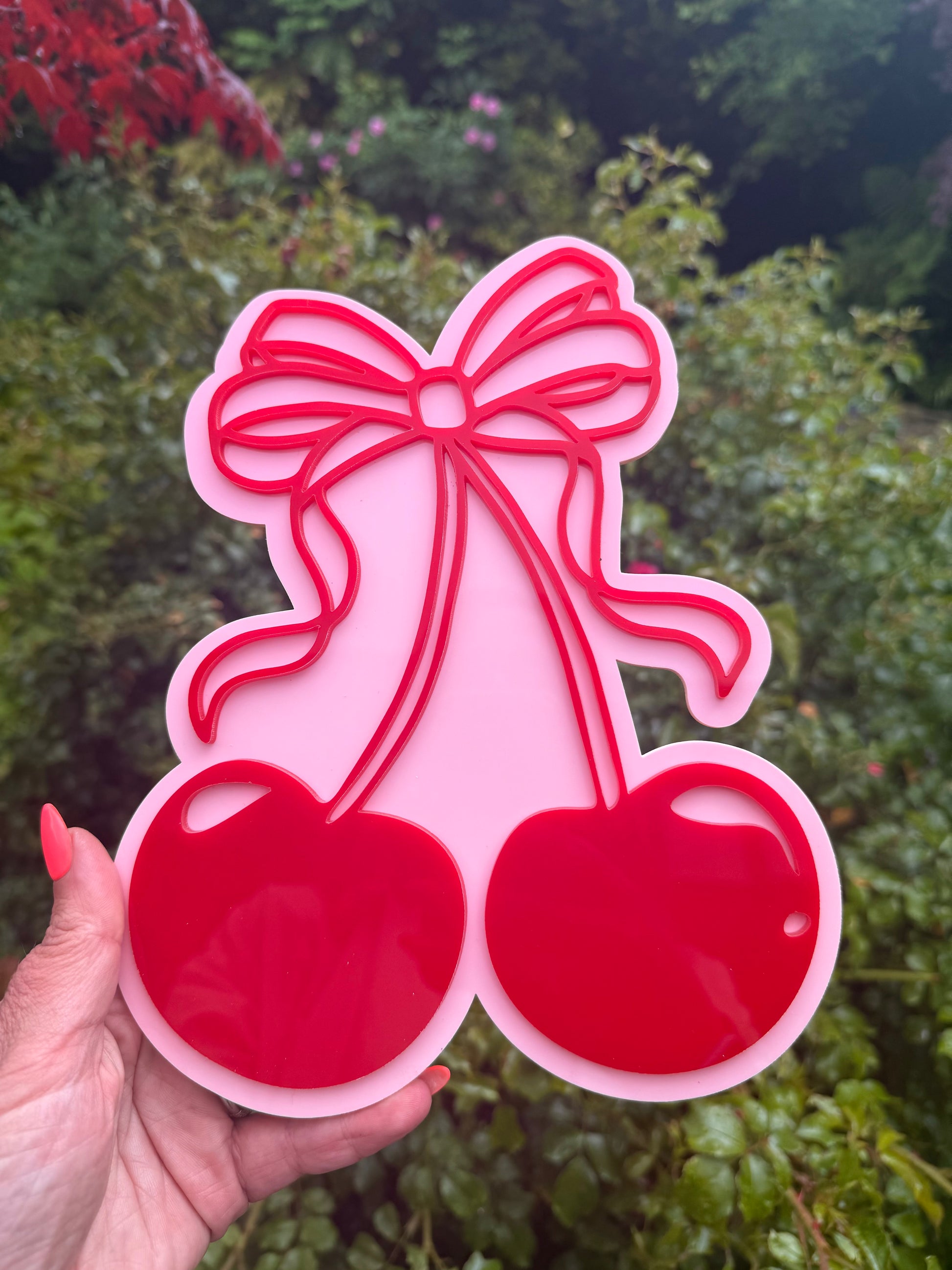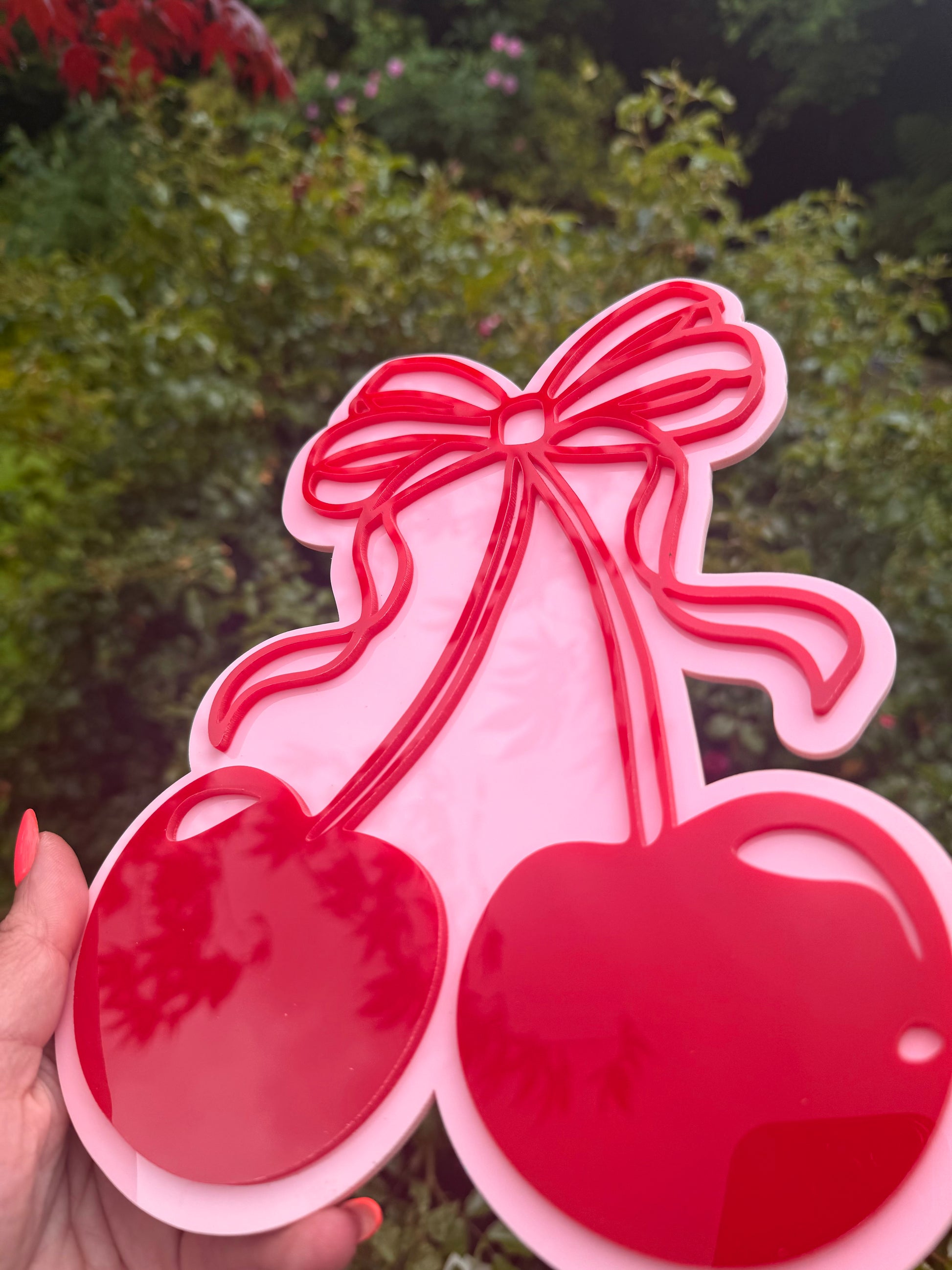 Coquette Cherries Wall Art – Y2K Aesthetic Acrylic Sign