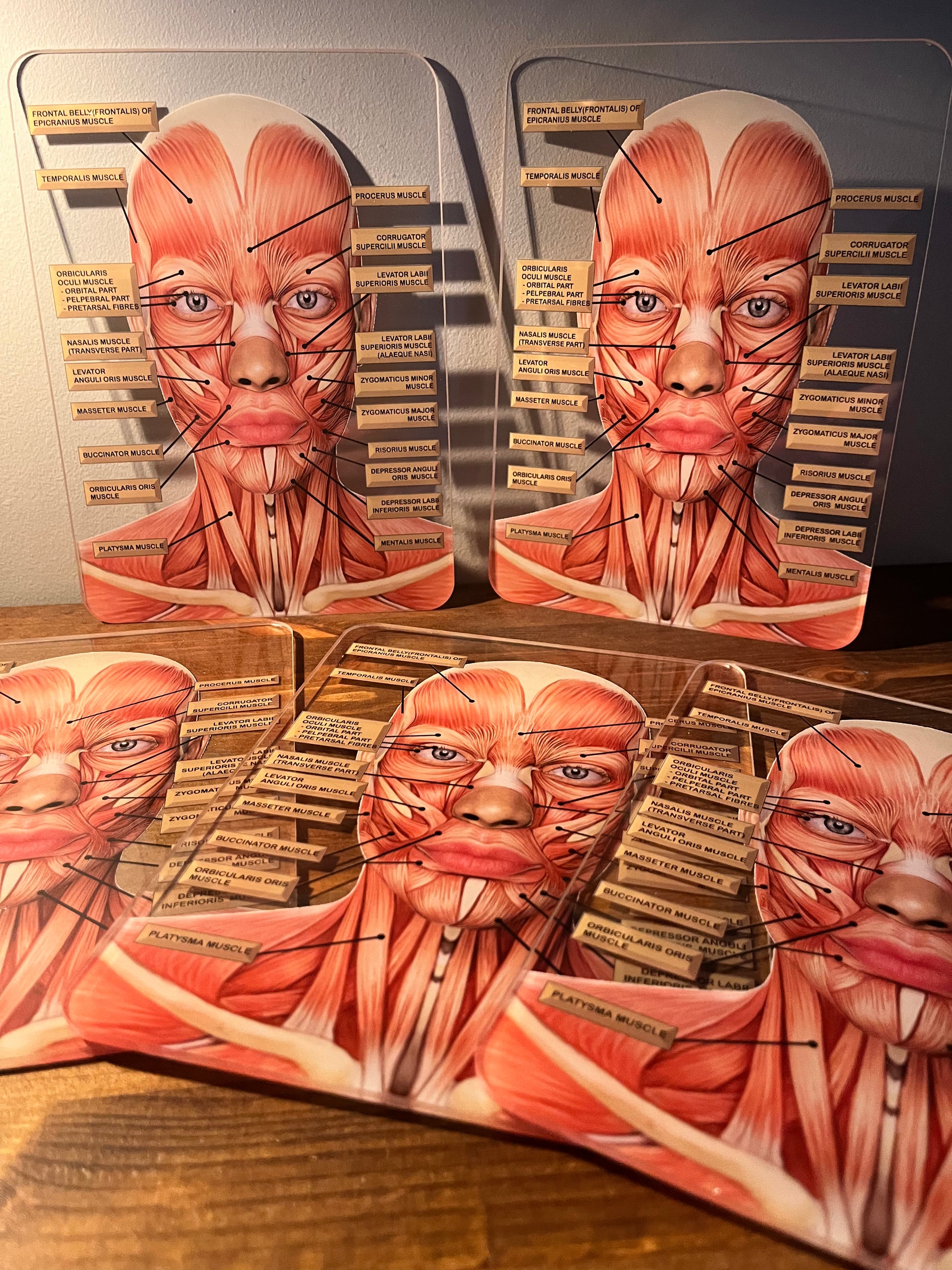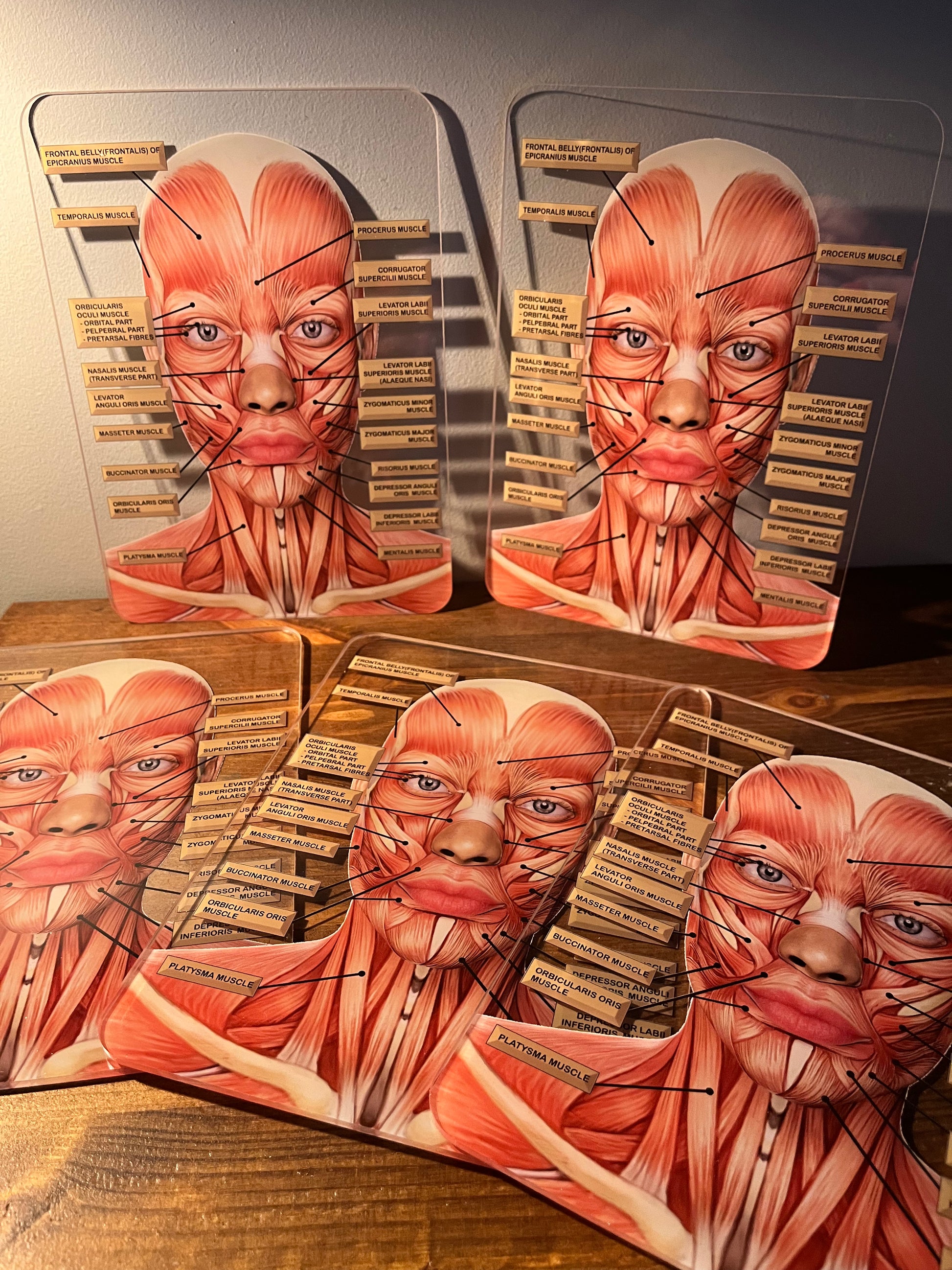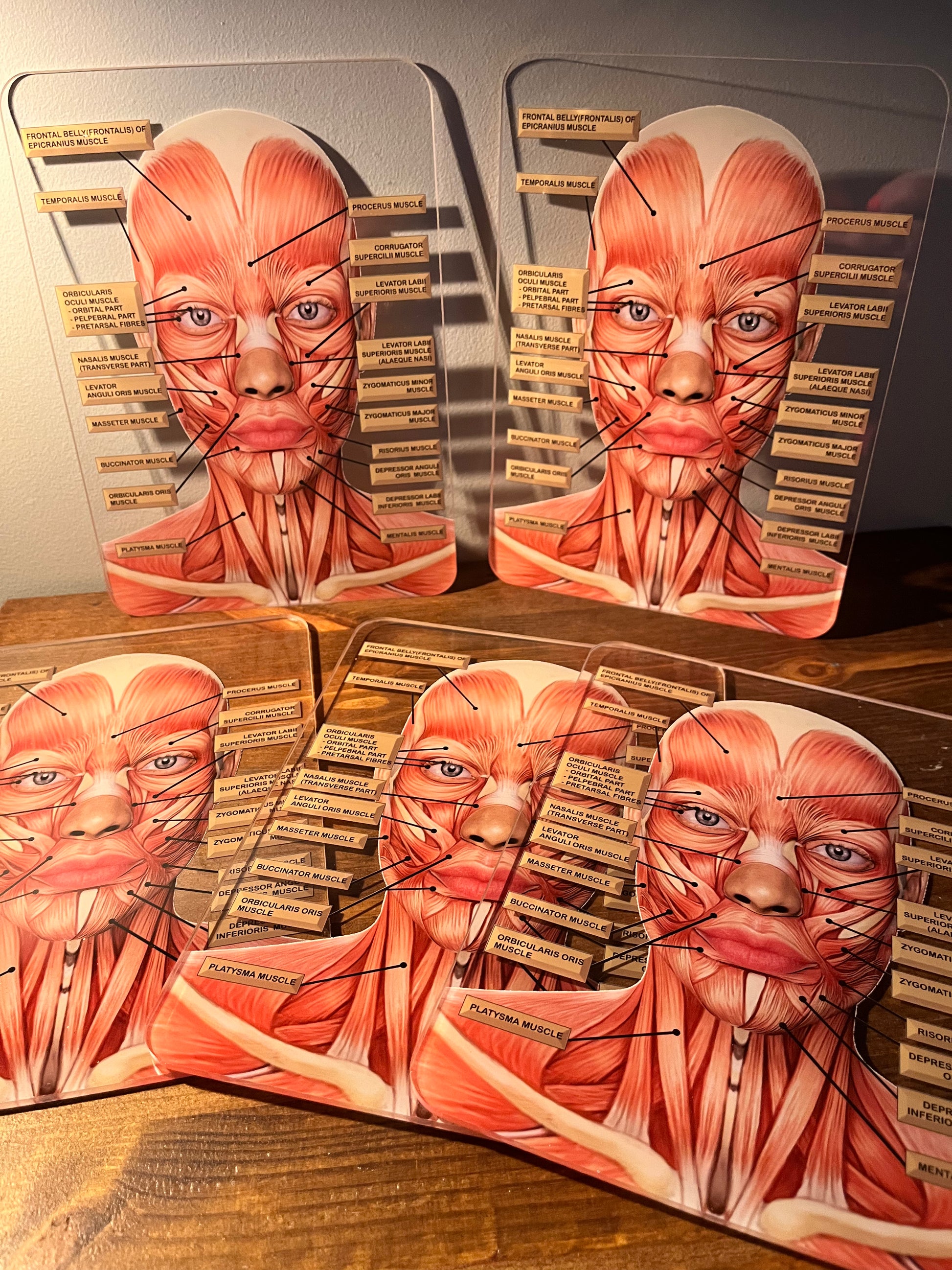 Each board is printed directly on to the 3mm acrylic, ensuring a stunning and permanent display of the intricate facial anatomy illustrations.