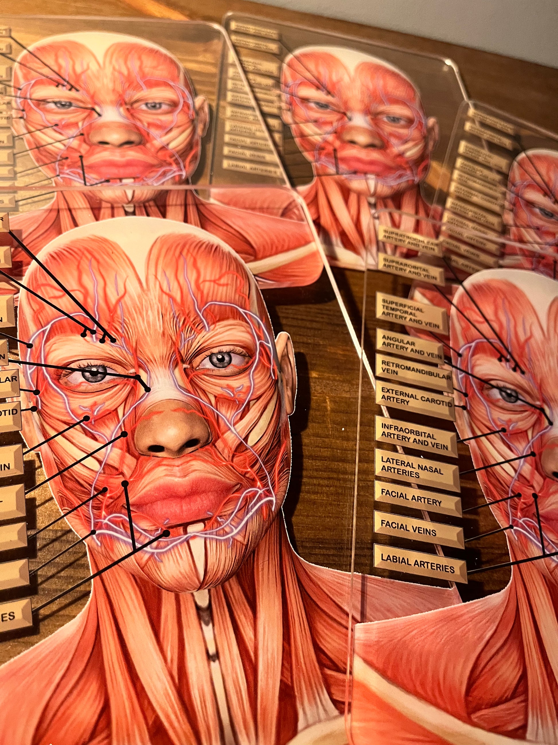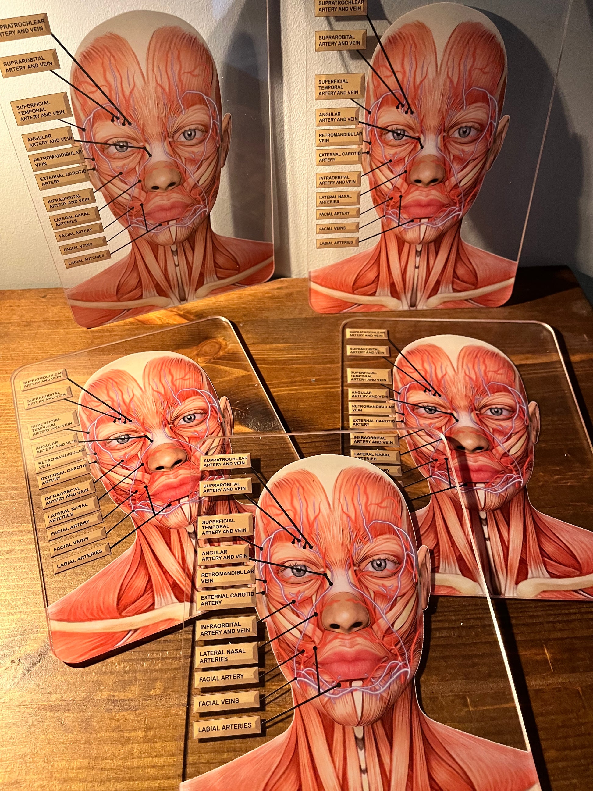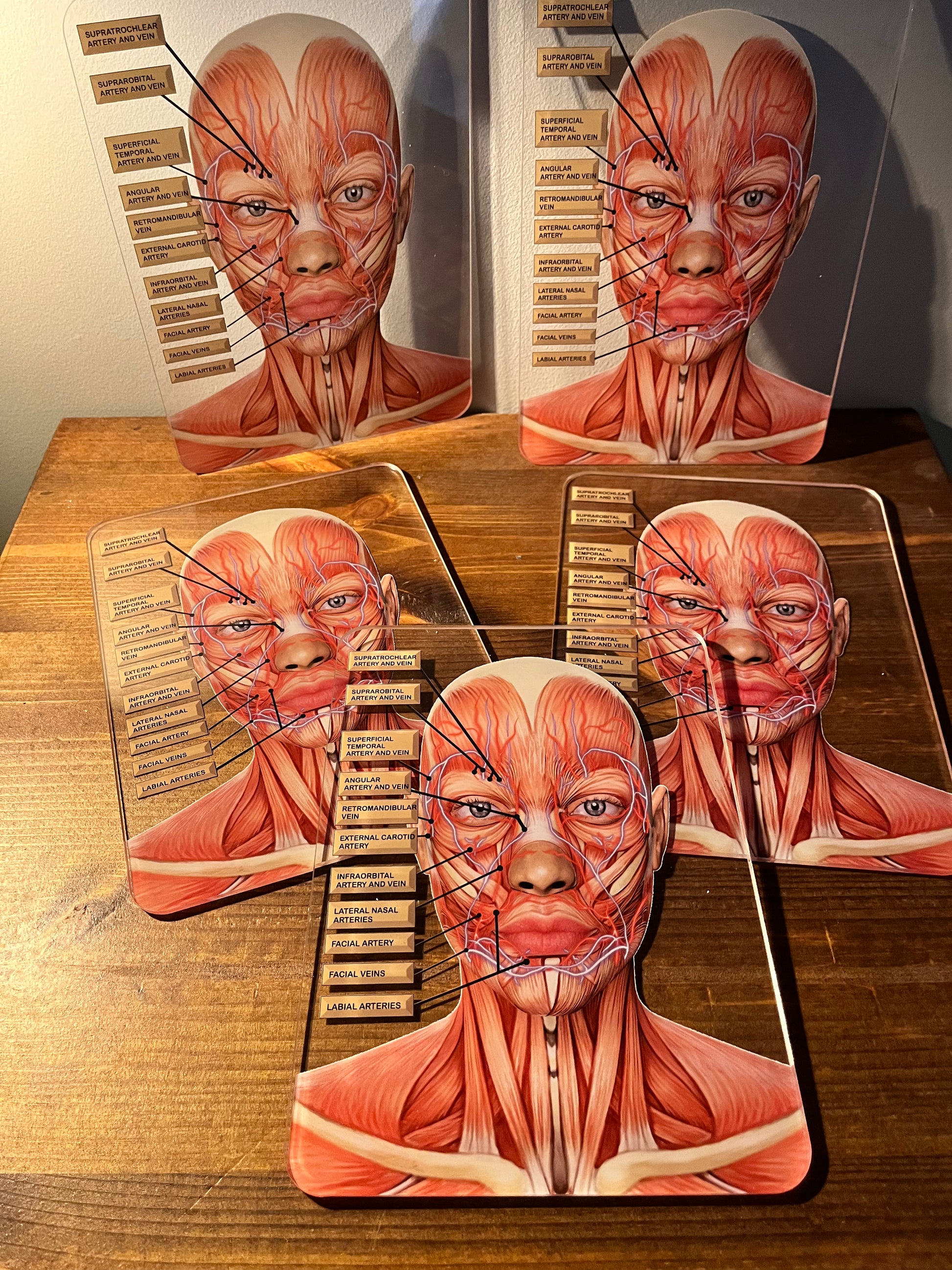 Each board is printed directly on to the 3mm acrylic, ensuring a stunning and permanent display of the intricate facial anatomy illustrations.