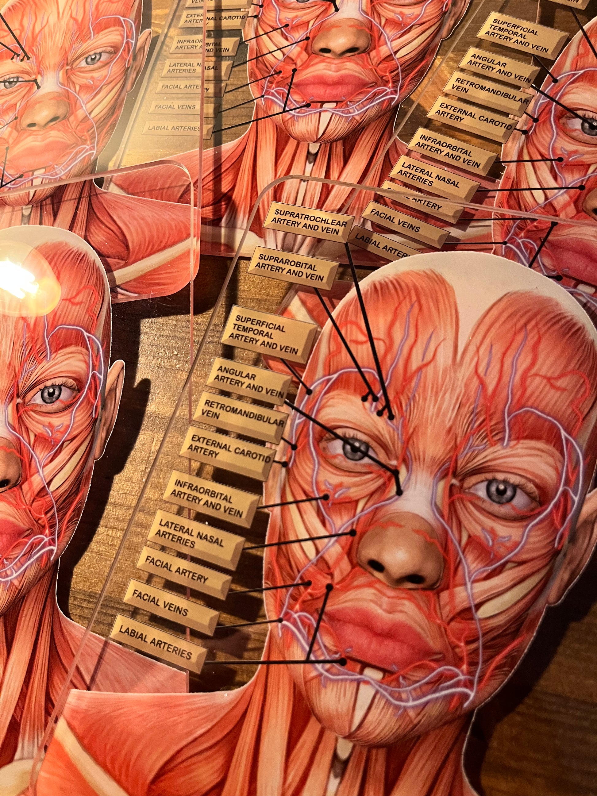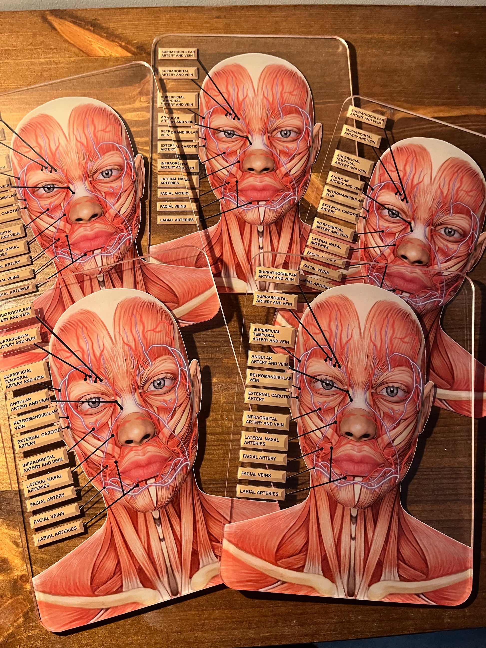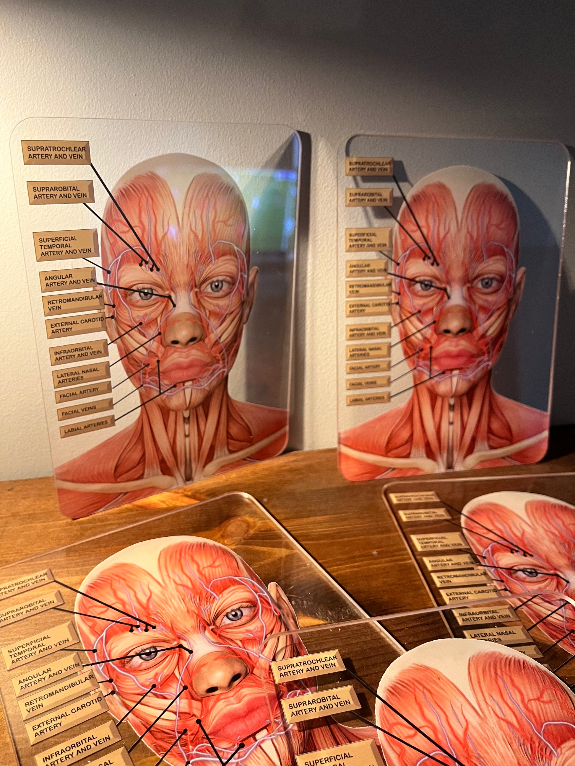 Each board is printed directly on to the 3mm acrylic, ensuring a stunning and permanent display of the intricate facial anatomy illustrations.
