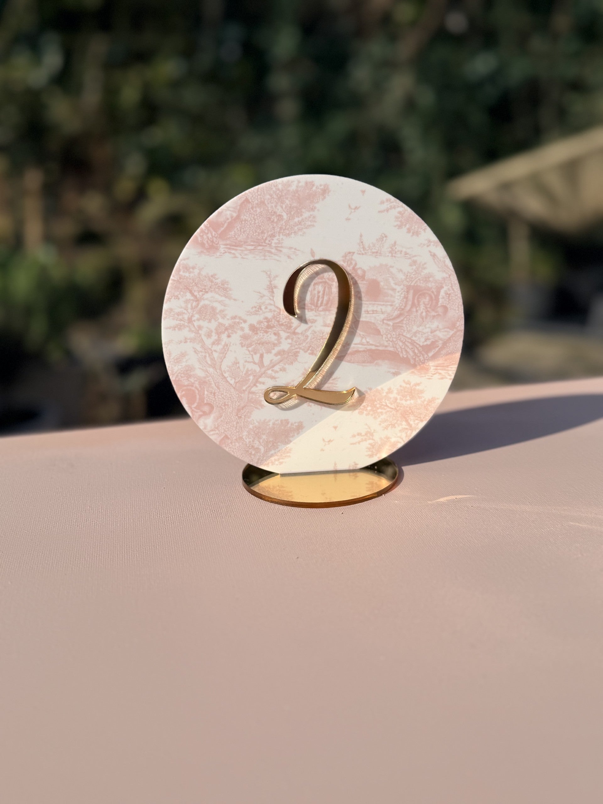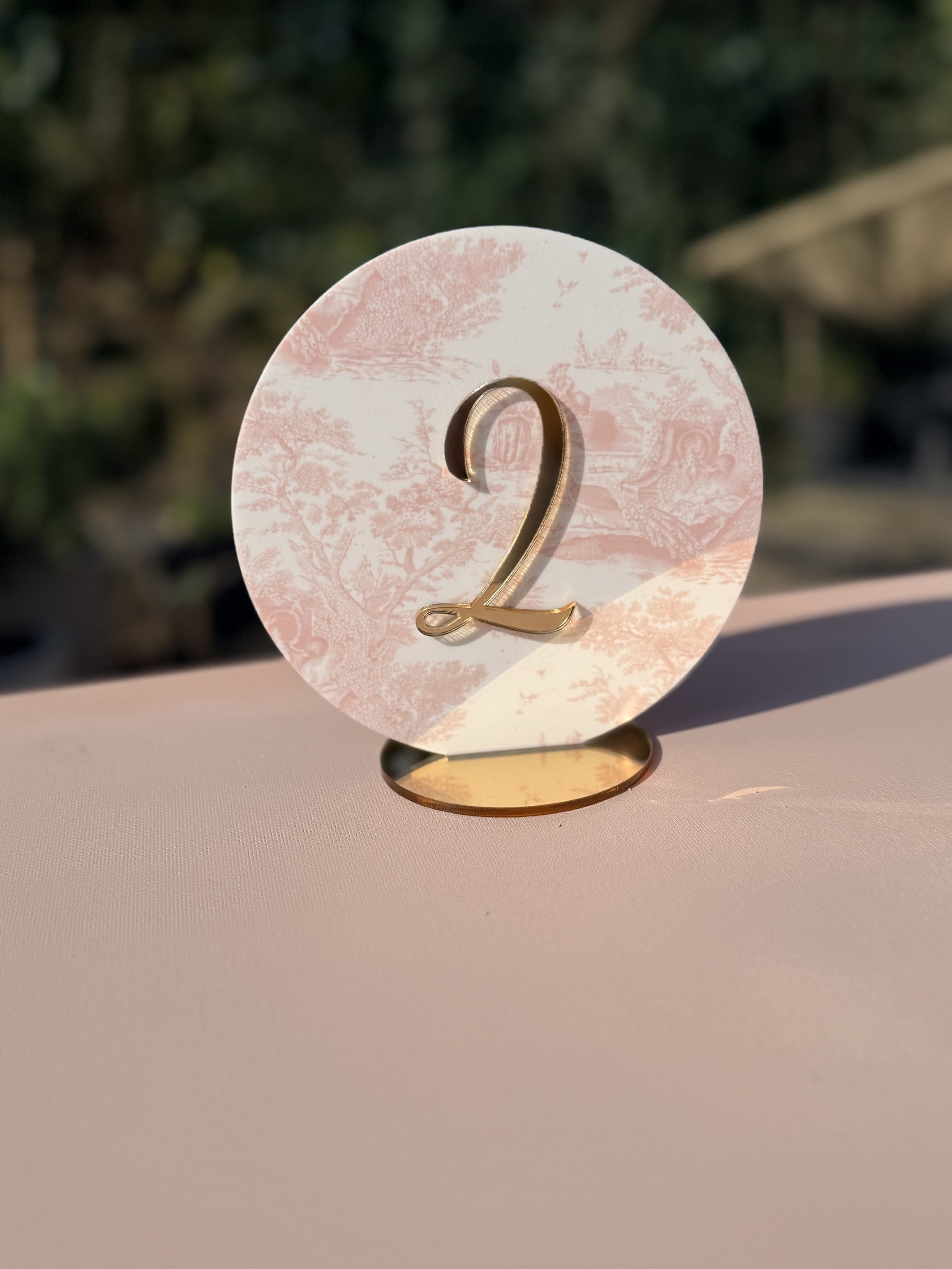 Each piece features a UV printed centre panel, creating a smooth, high-quality base with crisp detail and a flawless finish that won’t fade or peel. The table number itself is crafted in raised mirror gold acrylic, adding dimension and a subtle reflective quality that catches the light beautifully.